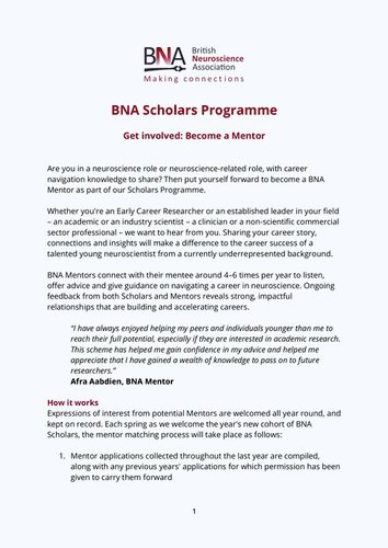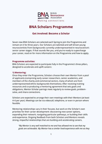 The Programme offers a unique blend of mentoring, professional development, and community support to help early-career neuroscientists reach their full potential. Through structured guidance from experienced mentors, access to cross-sector opportunities, and connection with a thriving BNA network, Scholars gain the tools, confidence, and community to grow and succeed in neuroscience